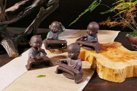 小和尚:三个小和尚由“三个和尚没水喝”的故事二来,代表“禅茶一味”的理念。四个小和尚代表非礼勿闻,非礼勿言,非礼勿视,非礼勿动。