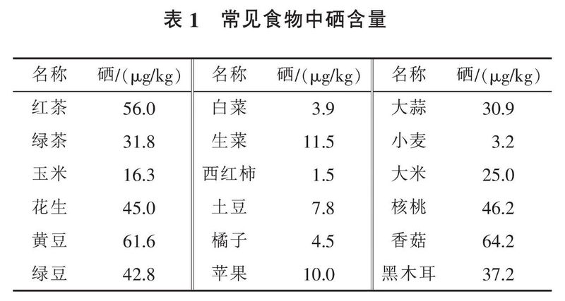 人们对硒元素的研究与开发过程大致分为3个阶段:20世纪50年代前,主要研究硒的毒性;70年代后,开始研究硒的营养作用,有关植物体内硒与有机硒的生物活性在这个时期得到了广泛研究;90年代初进行的总膳食结构调查结果显示,中国居民日常饮食中硒摄入量平均值为43.3μg/d,低于中国营养学会推荐的硒适宜摄入量下限(50μg/d),为此,硒的生理作用成为人们的研究焦点,并开始对其进行开发与应用,近年来,各种含硒药品、富硒蔬菜、富硒水果、富硒茶等富硒产品逐渐出现在人们的日常生活中。
