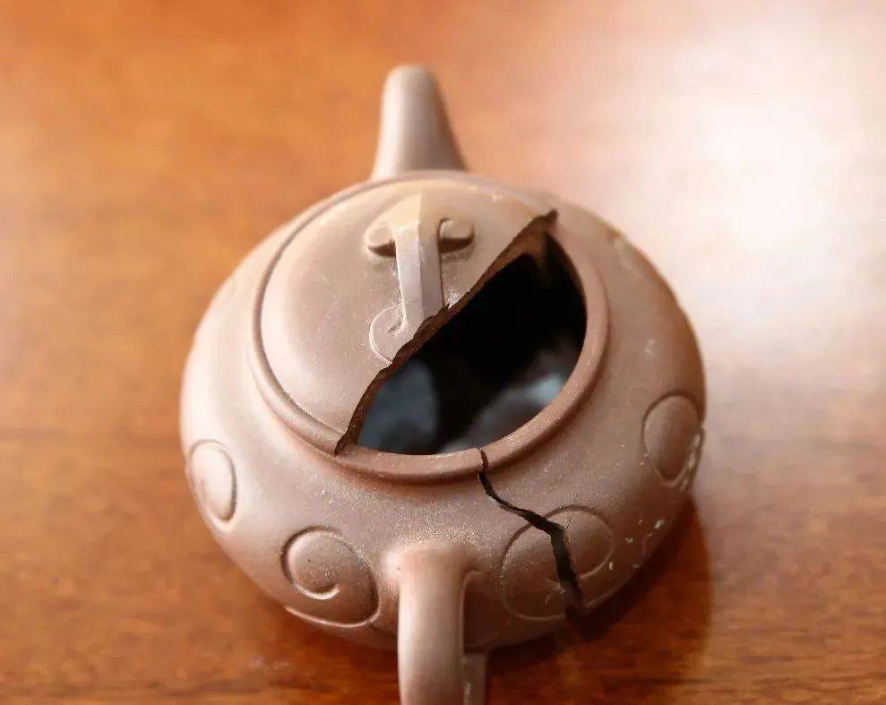 在这种情况下,如果紫砂壶还有暗伤,无论是因为制作原因还是平时使用不注意,磕了壶或撞了壶,出现细裂纹,都会让本已脆弱的紫砂壶更容易“惊裂”破碎。