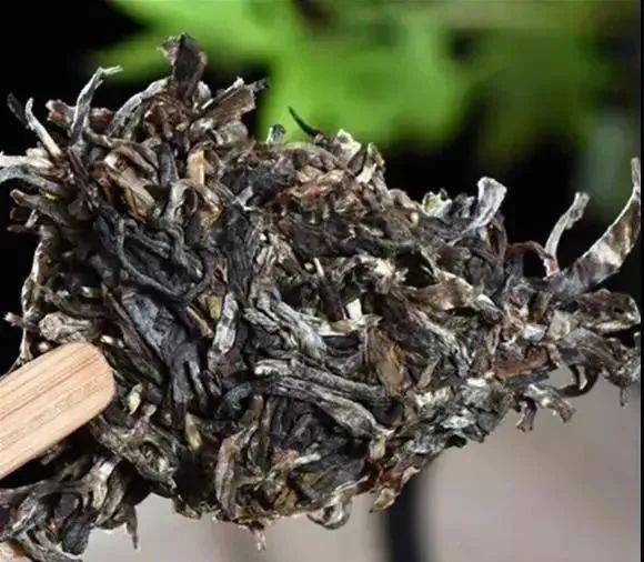 3、看干茶的外表,正常存放的陈年老茶叶,从外看起来应该是非常的光亮油润的,看起来很有光泽,而且表面应该是墨绿色甚至接近褐色的。如果茶叶有受潮那就有可能会在干茶表面长出白色的霉点,甚至是长白色的毛也是很有可能的。用手摸一下干茶,如果受潮的茶叶会是软软的,而如果存放比较好的干茶是很脆的。
