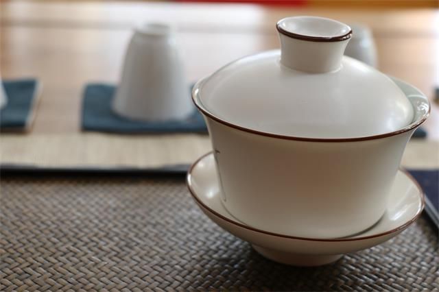 过1分钟左右,将壶盖打开放在“盖置”上,提壶注水入杯以“温杯”。注茶后加适度热水“醒茶”,到了茶在壶内已快“醒”到适当时,再将温杯水倒掉。提壶注水倾茶入杯或是持杯敬茶前,养成在茶巾上沾一下的习惯,使壶底、杯底的水滴,被茶巾吸干。