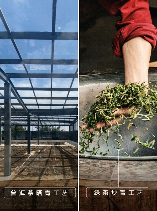 普洱生茶采用晒青工艺进行干燥,即日光自然干燥。而绿茶有炒青、烘青、蒸青、晒青等干燥方式,比如西湖龙井就是典型的炒青绿茶。