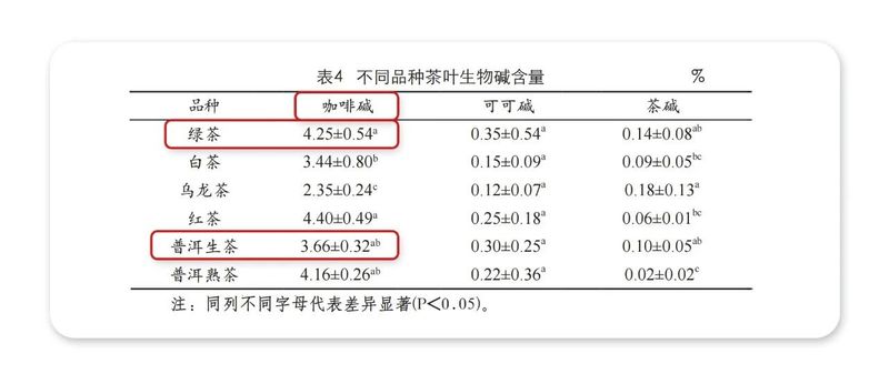 在咖啡碱的含量检测中,发现绿茶的咖啡碱含量要比普洱生茶含量高,苦味相对较高,提神作用也更大。