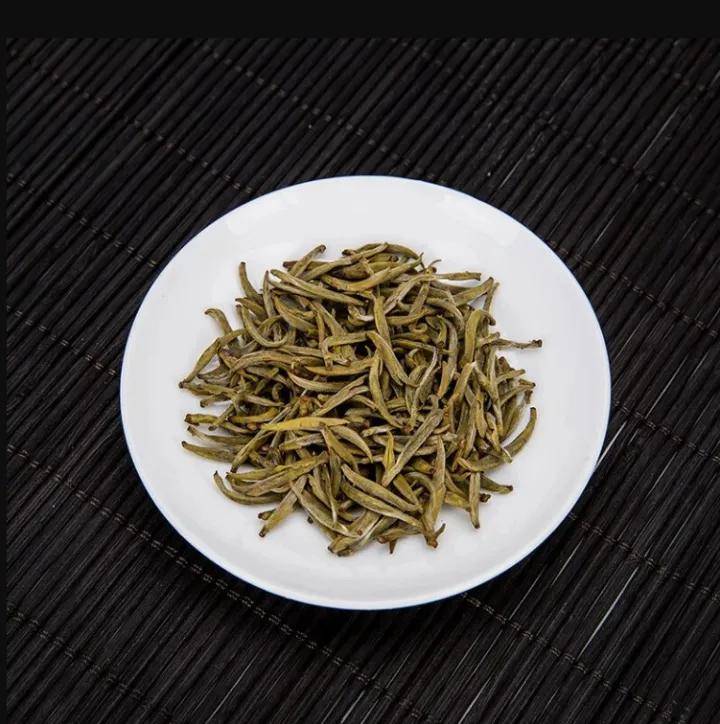 君山银针:其茶芽头茁壮,茶芽内面呈金黄色,白毫显露,雅称“金镶玉”。