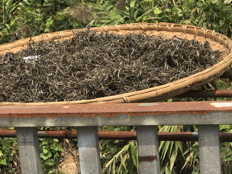 晒青是将揉捻好的茶叶均匀撒在簸箕或篾笆上,利用太阳光晒干,使茶青中的水分减少。晒青时,茶叶宜薄不宜厚。自然阳光温度较低,能最大限度保留茶叶的酶活性和有机物质,为普洱茶的长期存放与“越陈越香”创造条件。若采用烘干或炒干,会因高温使茶叶的酶活性和微生物等物质受损,无法达到长期存放的要求,也失去了转化空间。