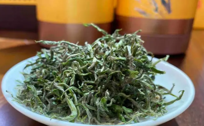保靖黄金茶的干茶色泽翠绿,条索紧结,银毫满披。冲泡后,茶汤呈现出明亮的黄绿色,散发出高雅的香气,清新宜人。