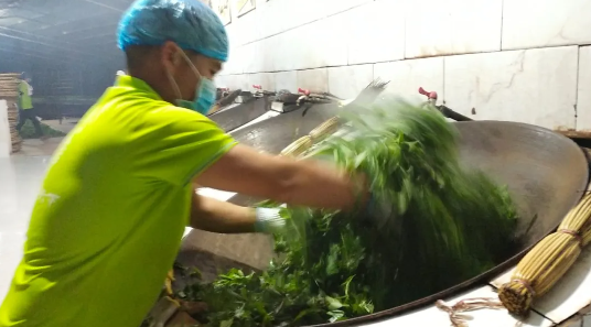 杀青是黑茶制作的关键环节之一,通过高温破坏茶叶中的酶活性,停止茶叶的发酵。揉捻则有助于塑造茶叶的形状,同时使茶叶细胞破碎,促进后续的渥堆过程。