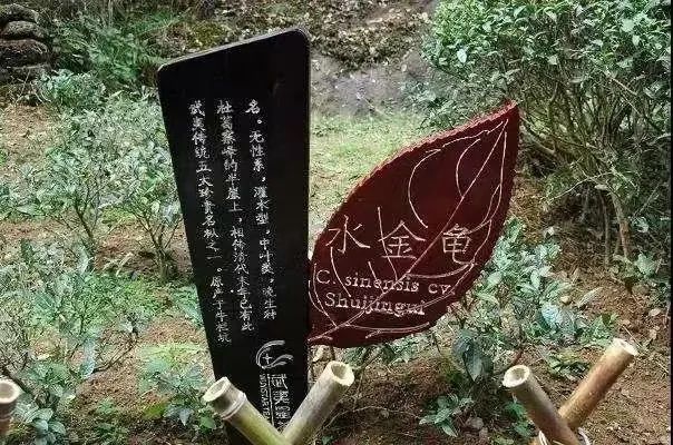 水金龟,因茶树枝条交错,形似龟背上的花纹,茶叶浓密且闪光,模样宛如金色龟而得此名。它是武夷岩茶“四大名枞”之一,产于武夷山区牛栏坑社葛寨峰下的半崖上。