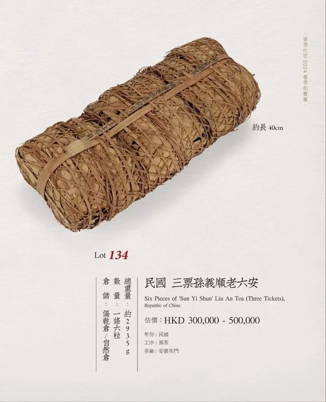 此外,苏富比公司,一家清乾隆年间创立的英国拍卖行,同样看中老安茶,一条1937年的安茶,他们给出了20-24万港元的估价。