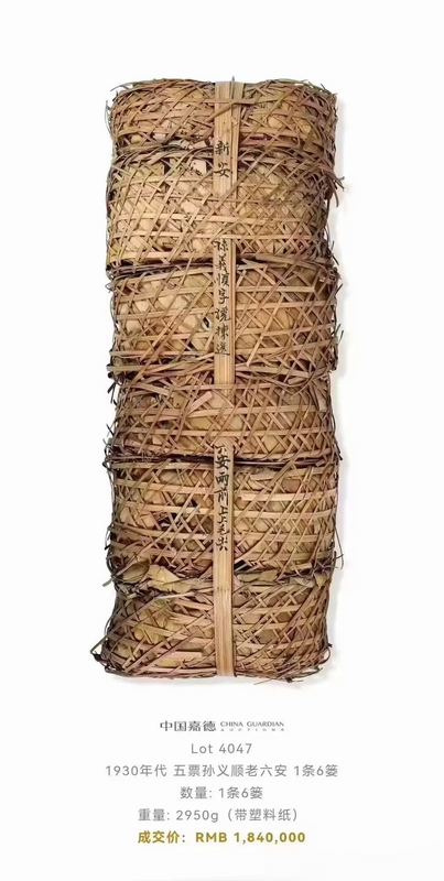 除香港拍卖会外,国内著名的嘉德拍卖公司也在2023年夏季,以184万人民币成交一条1930年代的6斤装安茶,相当于每篓(斤)成交价30万元以上。