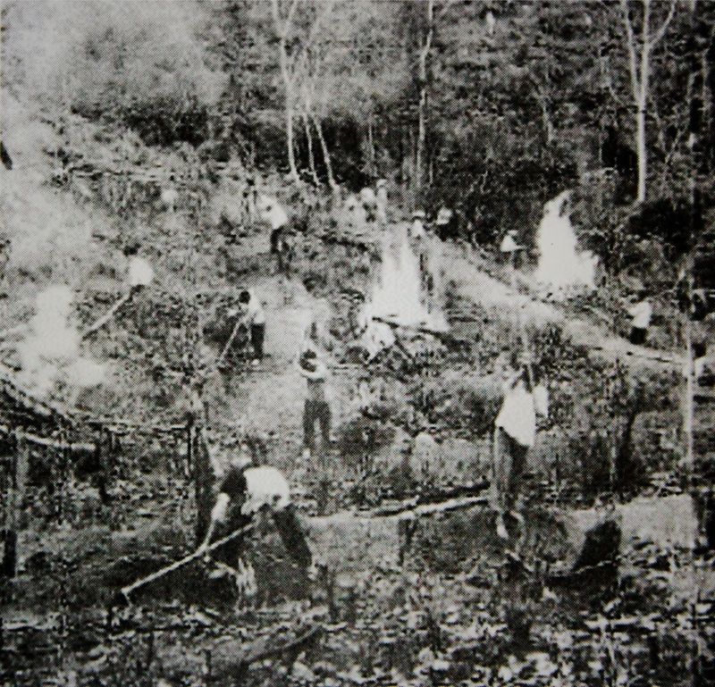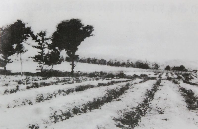 上世纪60年代农场刚定植的第一批茶园及茶叶加工厂