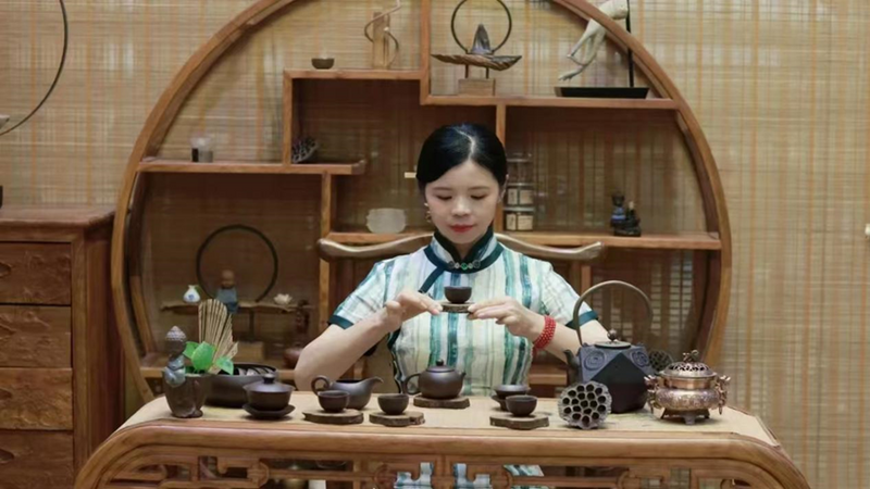 张馨心自2004年开始,近二十年潜心修茶,深受茶益,以传播茶文化为使命,主办协办百余场公益茶会,茶文化普及沙龙茶艺学员众多,录制茶文化知识基础理论课120节,被授予“2023中国非遗制茶大会茶文化大使”,第四届中华茶文化年会授予“全国十佳茶艺培训师”,左圭奖茶文化传播者等等名誉,是她热爱茶的一种具象化体现,她因茶受益,希望更多年轻人与茶结缘,与茶为友,倡导全民每天饮茶,每天用一杯茶来储蓄健康,每天给自己一盏茶的时间省身修心。伴茶师们将通过她们的热情和奉献,提升饮茶体验,创造宁静、联系和欣赏的时刻,她们是中国茶的使者,促使人们对茶更加的喜爱与热爱。端起茶盏,轻品岁月,一壶清茶伴着一颗心,不禁感喟:人生有这杯茶的香暖,真好。