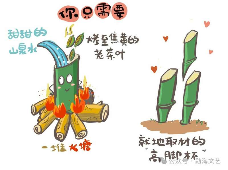 布朗族的青竹茶,是一种简便实用又特殊的饮茶方法。一般在出远门,远离家中或野外劳作时采用此方法。