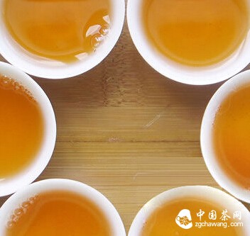 汤色:发酵度较轻者多为深红色,发酵重者以黑色为主。