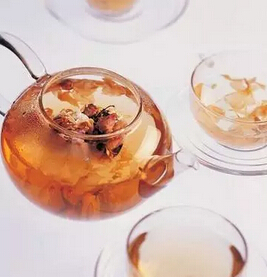 将花果茶用热开水冲泡后,加入适量的蜂蜜或冰糖,此为热饮;调好后加入冰块,即为冷饮,另外,如果时间充裕的话,也可以放入冰箱冷却后饮用。这是最基本的调法,要享受花果茶前一定要学好本招式。