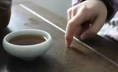 喝茶是长辈的,用食指在桌上轻弹两下,表示感谢;