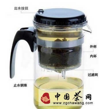 5.出汤:注水后稍待10-30秒后按压沥汤按钮,茶汤自然流入到飘逸杯下层空间中;