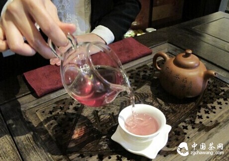 先说水温,紫娟对水温有别于其他的普洱茶,泡茶的水温尽量控制在85-90度之间,这样的泡出来的汤色才能呈淡紫色。如果水温过高颜色就会变黄,所以大家冲泡紫娟一定要控制好温度,可以将水烧开后,将其置于公道杯中,降温一分钟左右,再用公道杯中的水冲泡。