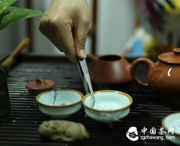 所谓"高冲水,低斟茶"讲求的就是要注意不得溅出茶水,做到每位客人茶水水量一致,以示茶刀公正平等,无厚此薄彼之义。分茶时,茶杯多放于客人右手的前方。