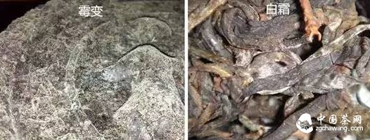 如果是局部的白沫不均匀,聚块,大小不一,而且茶饼撬开来内部也有(严重的还有冒出白烟和刺鼻气味),就是受过高湿后霉变的结果,只有经过严重湿仓或制作时干燥环节出现失误才会发生霉变。
