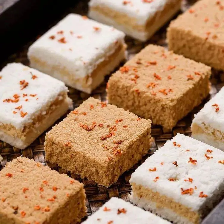 而在众多糕点,令人久久不能忘怀的是温州传统桂花米糕。记忆中是最具有古早味道的一款糕点。