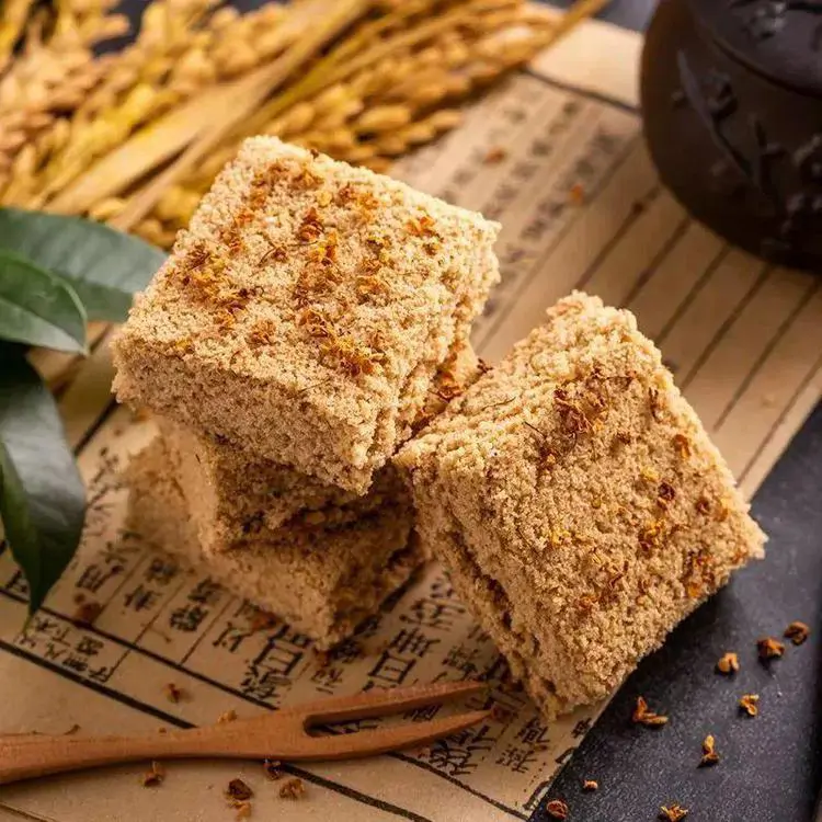 温州桂花米糕不添加任何的添加剂,吃的时候能闻到大米原有的清香,还夹着点淡淡桂花花香,这是它最难得的地方。