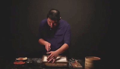 每块糕点都严格把控烹饪时间,每块米糕蒸足4500秒!4500秒,也是徐师傅做了18年米糕所总结的最佳时间。因为米糕蒸不够时间,口感会偏硬;蒸久了,口感又会偏软。4500秒,蒸出来的米糕才会够韧劲、柔软!最后蒸出来的米糕被撒上当季的上等桂花,再由人工压实,定型切割。