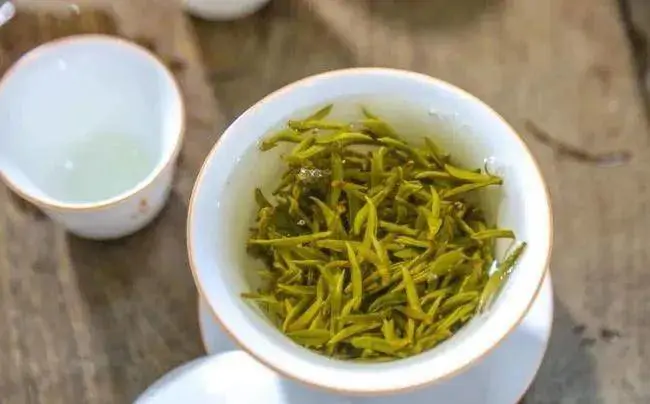 首先,看干茶的外形。温州黄汤的外形因种类不同,差异很大,容易混淆不清。有的像白茶类的白毫银针;有的像绿茶类的细烘青;有的像毛峰;有的像绿大茶。但总的来说,虽然形状各异,其色泽都黄绿多毫,并形细紧纤秀。