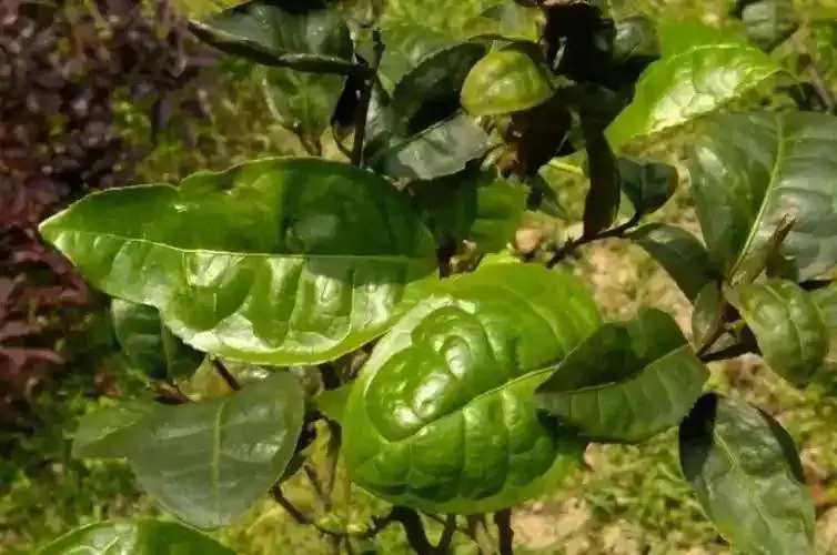 最后,观叶底的肥厚。永春佛手茶特殊的圆形叶与肥厚度也很容易辨识。叶底看上去似佛手柑叶,肥厚丰润,质地柔软绵韧,紫红亮丽。