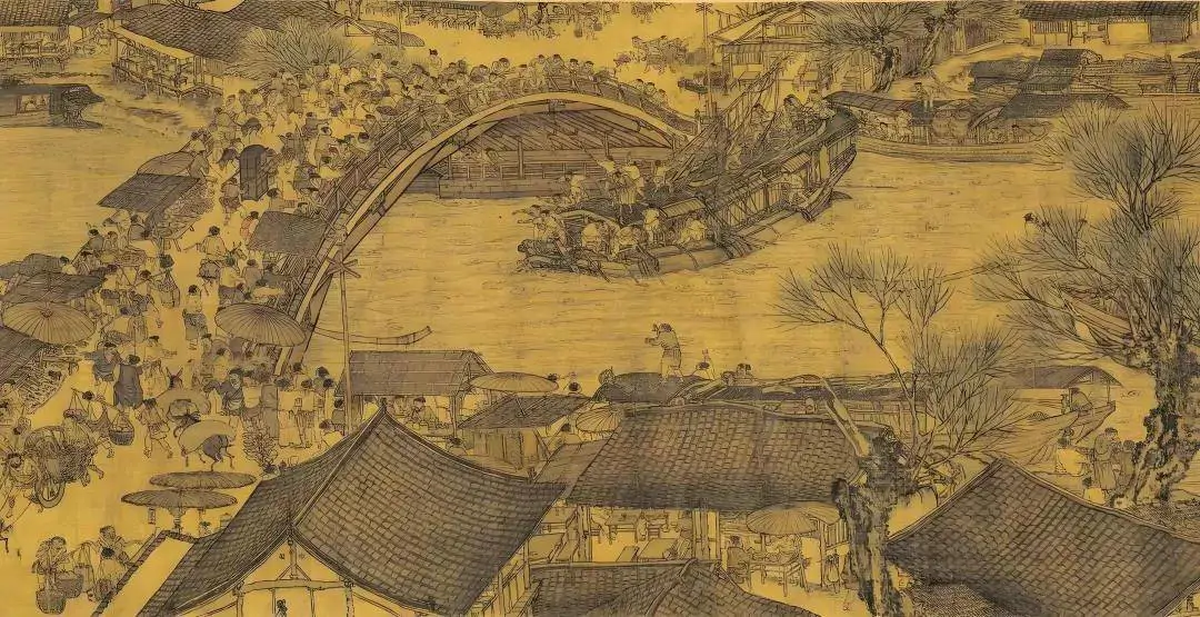 宋时,茶馆业开始繁华兴盛,特别是京城汴京(今开封),正如张择端《清明上河图》绘画所载:图中虹桥的右下部及对岸河边,茶铺一字排开,屋檐下方桌排列有序,许多茶客在席间喝茶闲谈。这种盛况在《东京梦华录》中也有详细记载。南宋时,据耐得翁《都城纪胜》载:当时京城临安(今杭州)茶馆不但形式多样,有大茶坊,人情茶坊,水茶坊等;而且讲究排场,数量也更多了。所以,吴自牧《梦粱录》载:南宋时杭州"处处各有茶坊"。