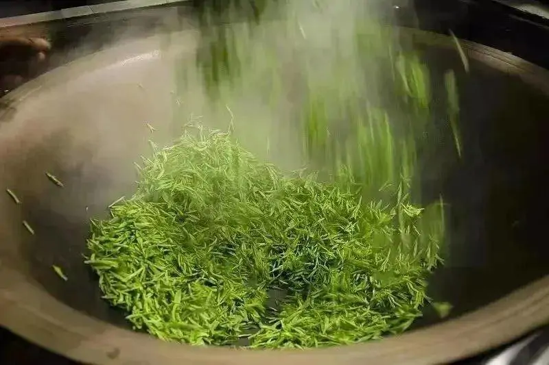 所谓杀青就是通过高温来杀死叶细胞,抑制发酵的发生。目前通行的杀青方式主要有两种。一种就是炒青。我们平常喝的茶绝大部分都是炒青的杰作。另一种叫做蒸青。日本的玉露、煎茶、抹茶等多是蒸青的产品。
