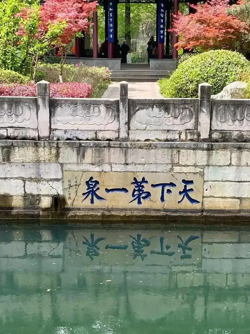 史载金山原是一个小岛,中泠泉也只是在枯水季时,当江水退潮后才有可能露出泉眼。平日要汲中泠泉水,都需轻舟而上。以后,几经沧桑,到清代同治年间(1862-1874),随着长江主干道的北移,金山才与南岸相连。所以,如今的中泠泉已成为长江南岸金山公园旁的一处茶文化景观。在池边的石栏上,刻有“天下第一泉”五个大字,乃是清代镇江知府、著名书法家王仁堪所题。池旁的“鉴亭”,是历代爱茶、崇茶、写茶的文人学士品泉试茗之地,为后人传为佳话。