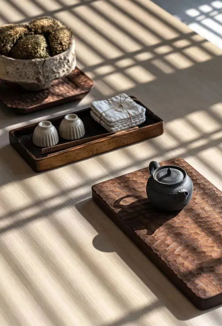 真正的茶席不在雕梁画栋的雅室,而在心无挂碍的方寸。那年游历天目山,在破败的禅院角落发现一方青石,石上苔痕斑驳如天然茶席。