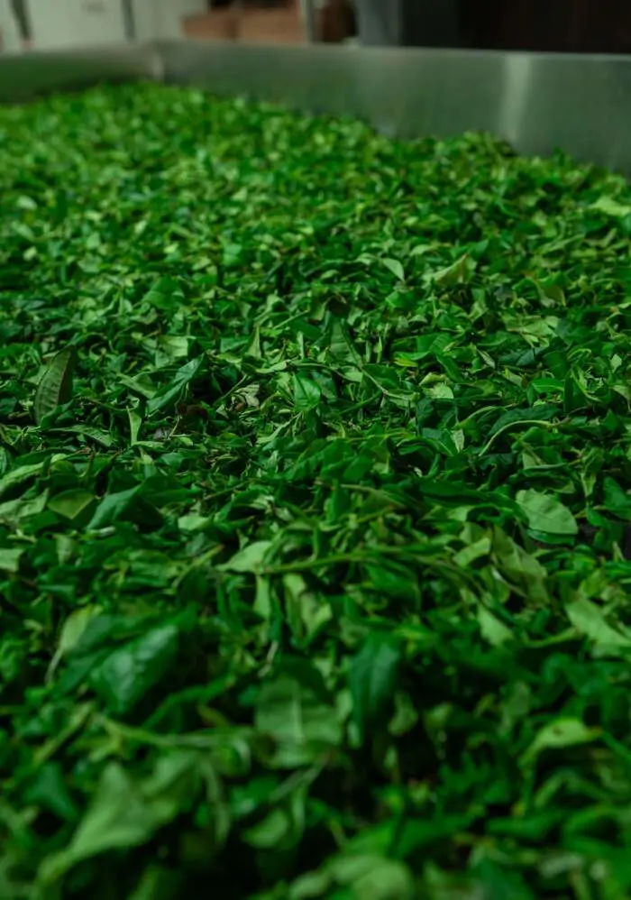 萎凋槽萎凋:摊叶稍厚,需要适时翻动保证均匀性。