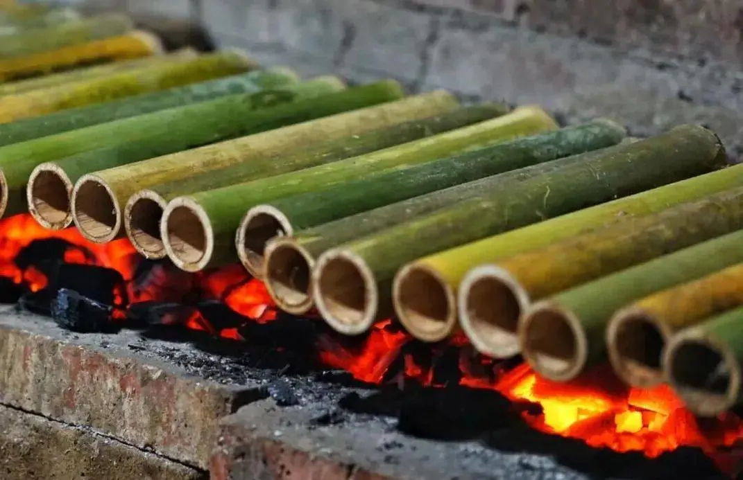 这种经过烘烤和青竹筒煮出来的茶水,汤色绿中带黄,虽然茶味不浓,喝起来却十分爽口,清香而甘洌。