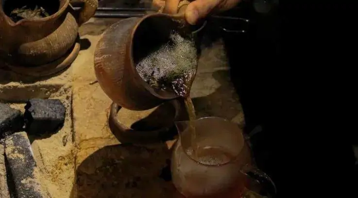 纳西族的"龙虎斗"堪称一绝。先将茶装入一只小陶罐,连罐带茶放在火上烘烤,边烤边转动茶罐,使茶受热均匀。待茶发出焦香时冲入沸水,煮3~5分钟。然后,把茶倒入装有半盅白酒的茶盅内。热茶与酒热烈相拥,发出"啪啪"的声响,被纳西人视为吉兆。"龙虎斗",茶酒既相"争"又相融,好看又好听。