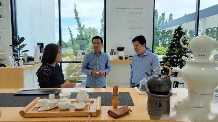 吴志斌(右一)在新西兰汉密尔顿与当地皖籍侨领考察中国茶园受访者供图