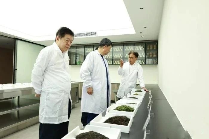 吴志斌(左一)陪同安徽省政协副主席孙云飞(中)在安徽省茶业集团调研受访者供图