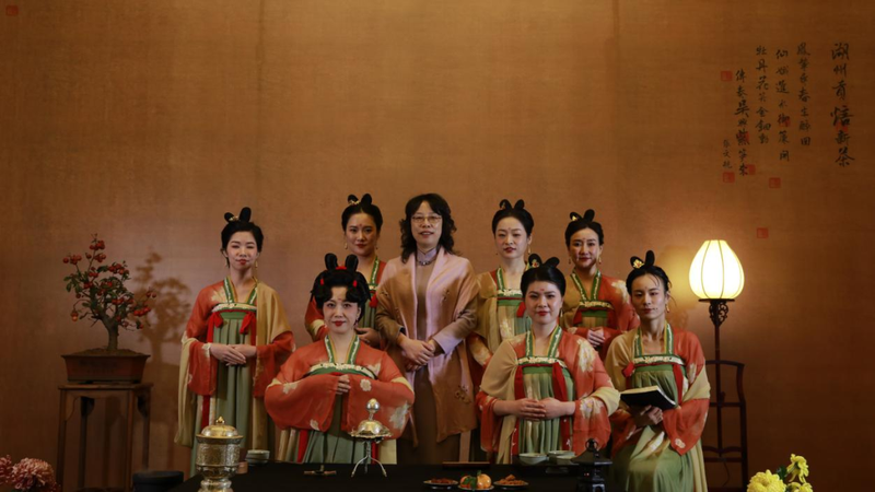 二是不遗余力做好传承。2013年至今,作为茶文化发源地长兴县高技能人才培训基地水口乡成人文化技术学校的茶文化教育任课老师,组织并培训茶艺师、评茶员近千人,学生遍布全国各地及海内外。其学生王燕、潘影多次参加省市茶艺师职业技能大赛,获得“一等奖”“浙江省技术能手”“浙江青年工匠”“湖州工匠”等荣誉。2011年负责浙江省非遗紫笋茶制作技艺培训项目,共培训紫笋茶制作技艺高级工40余人;2016年至今为中国茶叶学会、中国农业科学院茶叶研究所茶艺技师班授课《大唐煮茶》,培训近400人;2023年作为《典籍里的中国》之《茶经》技术指导老师,负责唐代煮茶拍摄指导。