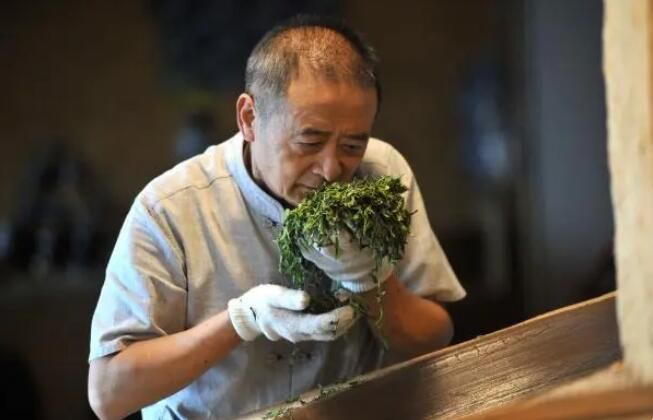 2023年7月17日,在贵州省铜仁市石阡县聚凤乡高原村,牟小虎在手工制茶闻香。(宁坚)