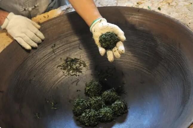 2023年7月17日,在贵州省铜仁市石阡县聚凤乡高原村,牟小虎在手工制茶搓团提毫。(宁坚)