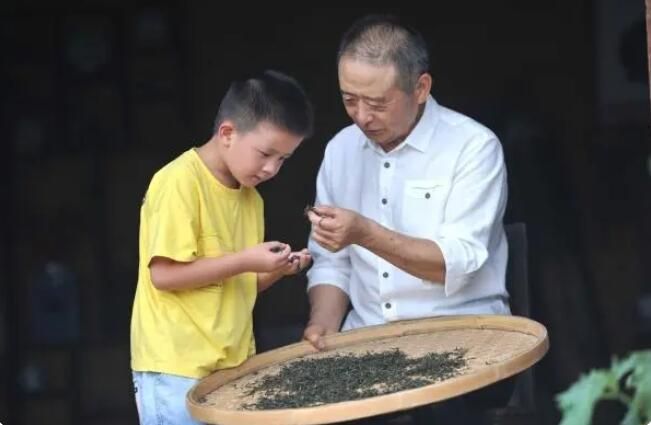 2023年7月17日,在贵州省铜仁市石阡县聚凤乡高原村,牟小虎在为一位男孩传教制茶文化。(宁坚)