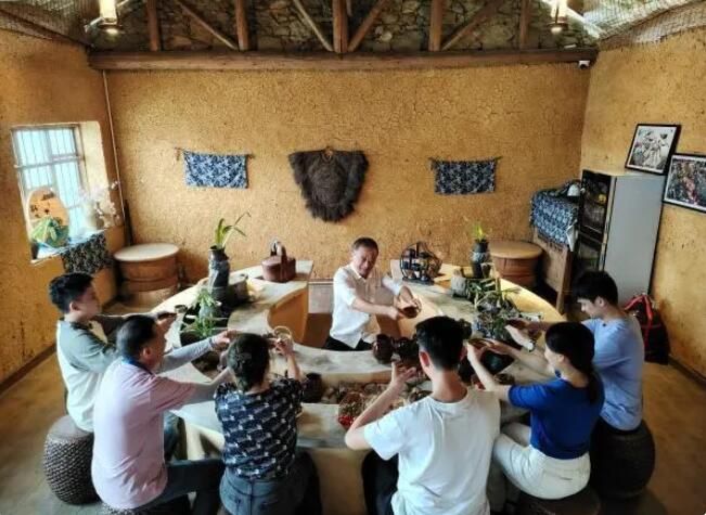 2023年7月17日,在贵州省铜仁市石阡县聚凤乡高原村,牟小虎在与爱茶人士共品茗香。(宁坚)