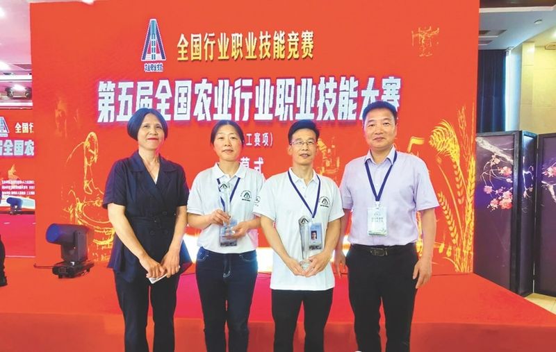 石春生(左三)荣获第五届全国农业行业职业技能大赛茶叶加工赛项第一名。