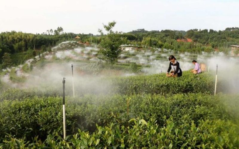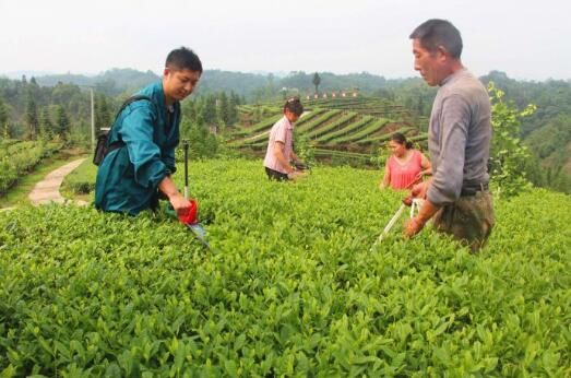 茶园里,在采茶机的帮助下,茶农们三人一组,在茶垄里来回穿梭,一个人怀抱机具采,一个人用口袋装,一个人将装满茶叶的口袋运送到茶园路边,个个忙得满头是汗。“以前春茶采收后就不再采摘夏秋茶叶了,现在用上采茶机后,夏秋茶也成了香饽饽,每亩要增收2000元。”拂羽茶园负责人曾茂林介绍,该茶园占地约1000亩,都是采用生态种植,并通过引入低山云雾喷灌系统。由于川龙山生态环境优越,加之采用雾灌,出产的茶叶品质上乘,深受消费者欢迎。