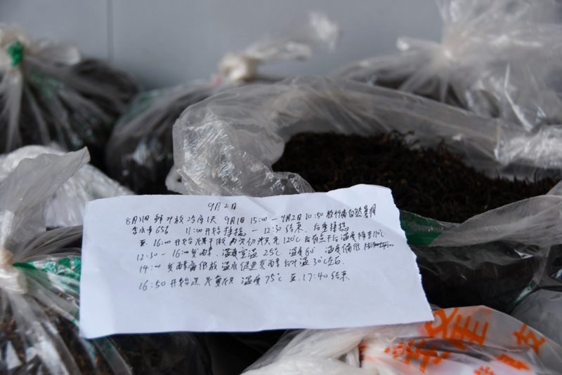 在武义熟水茶业有限公司,记者看到台面上摆满了鲍王栋两个月以来所练习的手工茶,揉捻、烘干、发酵、复烘......每一道工序的加工时间都详细记录在一张张白纸上。为了锻炼制茶手艺,鲍王栋几乎每天“泡”在自家的茶房里。