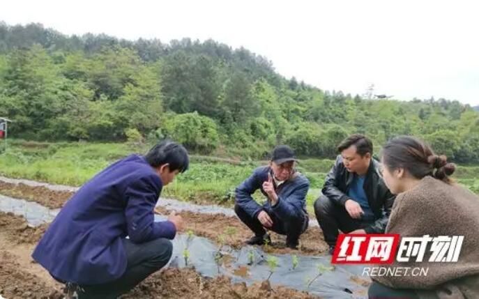黄宏全(左二)指导莓茶种植。