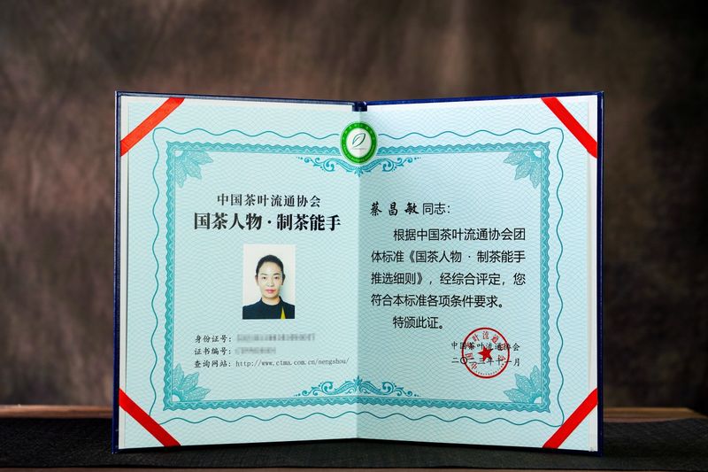 蔡昌敏女士荣获中国茶叶流通协会“国茶人物·制茶能手”