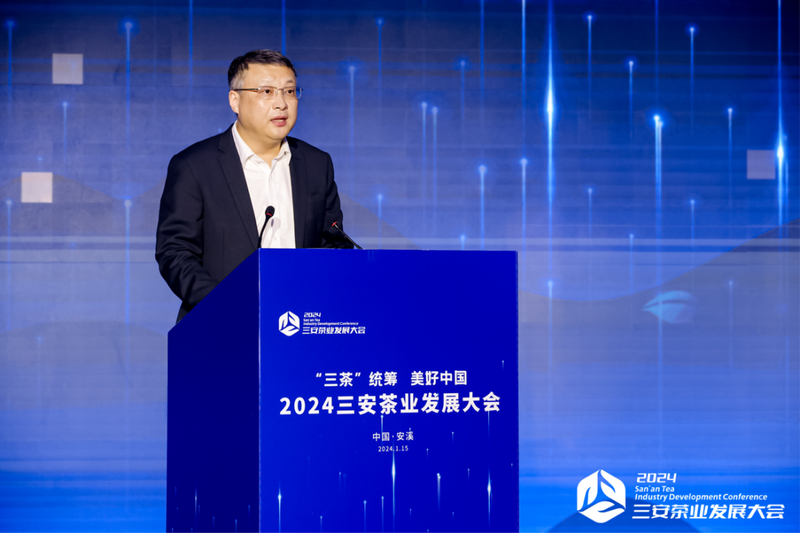 1月15日,由泉州市人民政府、中国经济信息社、海峡两岸茶业交流协会、中国茶叶流通协会主办,安溪县人民政府、泉州市农业农村局、新华多媒体数据有限公司承办的“2024三安茶业发展大会”在福建安溪成功举办。本次大会以“‘三茶’统筹美好中国”为主题,安溪、安吉、安化、澜沧等全国多个产茶县联动,众多领导、茶产业专家、茶企代表共聚一堂,交流互鉴,共同促进中国茶品牌融合协调发展。安溪县委书记吴毓舟出席大会并致欢迎辞。