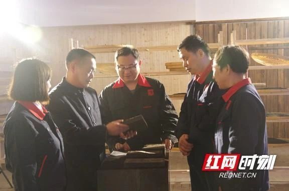 肖益平与员工讨论制茶。